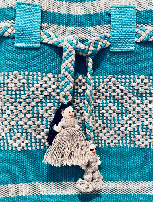 Handwoven Shoulder Bag - Aquamarine & Grey
